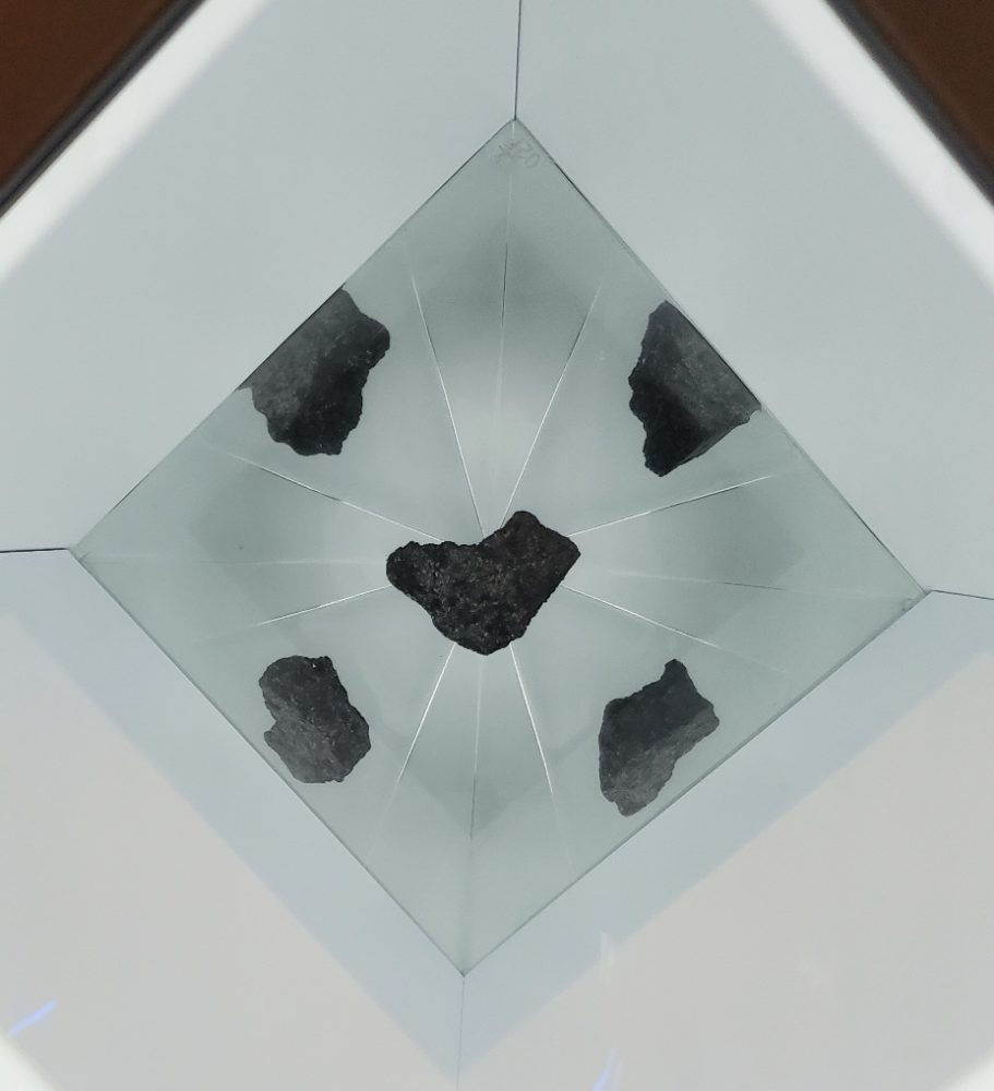 展示の締めくくりは、1970年大阪万博でも話題となった「月の石」。写真撮影あり/なしでルートが分かれるため、不要な方は並ばずに出口へ進めます。