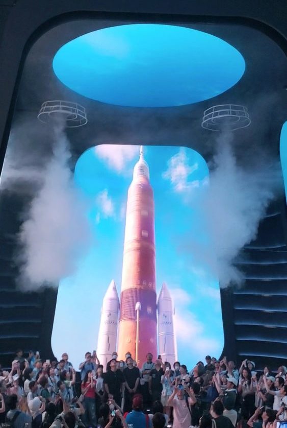 ロケット発射シーンでは、 鏡を背にして立つと3方向スクリーンに囲まれた演出が楽しめるのでおすすめです。