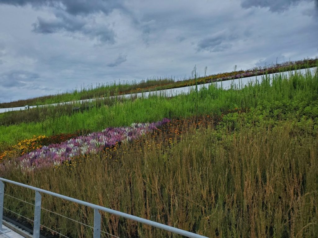 リングの上で驚いたのは、ただの通路かと思っていた場所が、植栽が施されて自然と一体感を覚える空間になっていたことです。下を眺めれば、パビリオンの位置関係も把握しやすいので、迷った時に上ってみるのもおすすめです。
