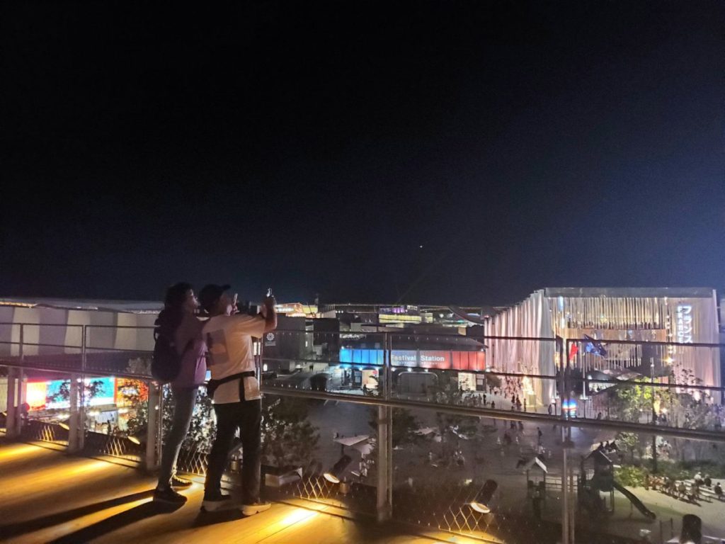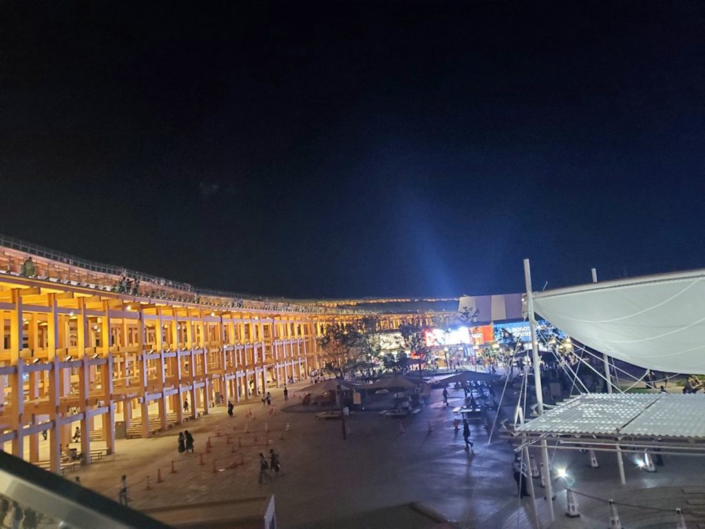 昼間は大阪湾や個性あふれるパビリオンとの調和を楽しめますが、夜になると雰囲気は一変します。