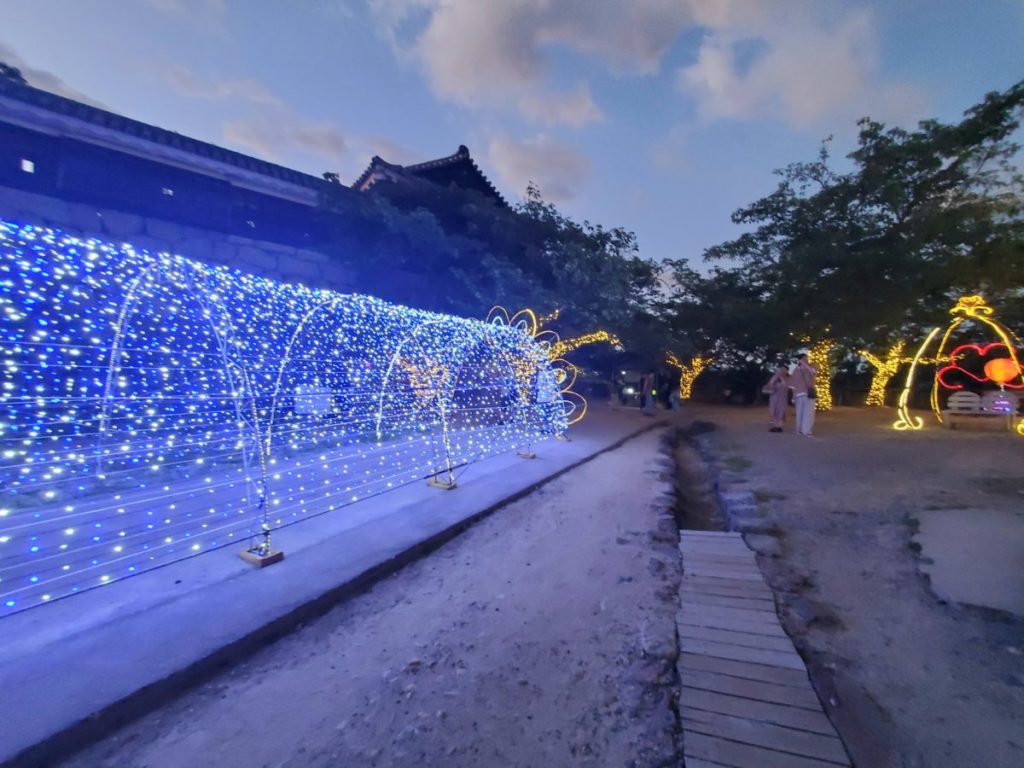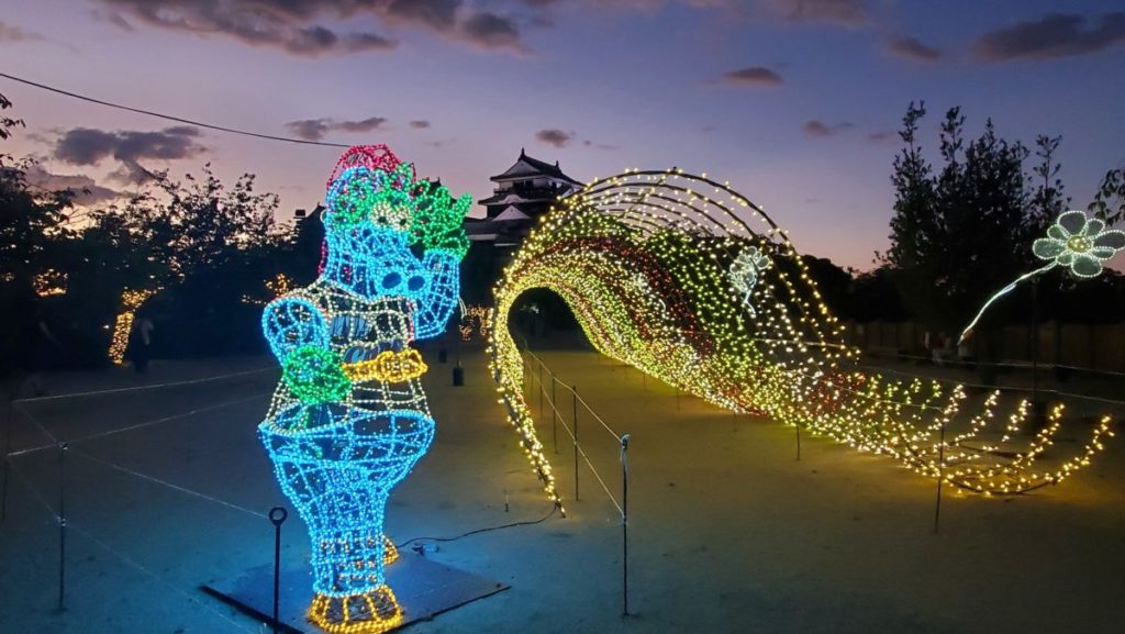 「光のおもてなし」では、登城道から本丸広場にかけて、カラフルなイルミネーションや光のオブジェなどが設置され、まるで物語の中にいるような空間が出現します!