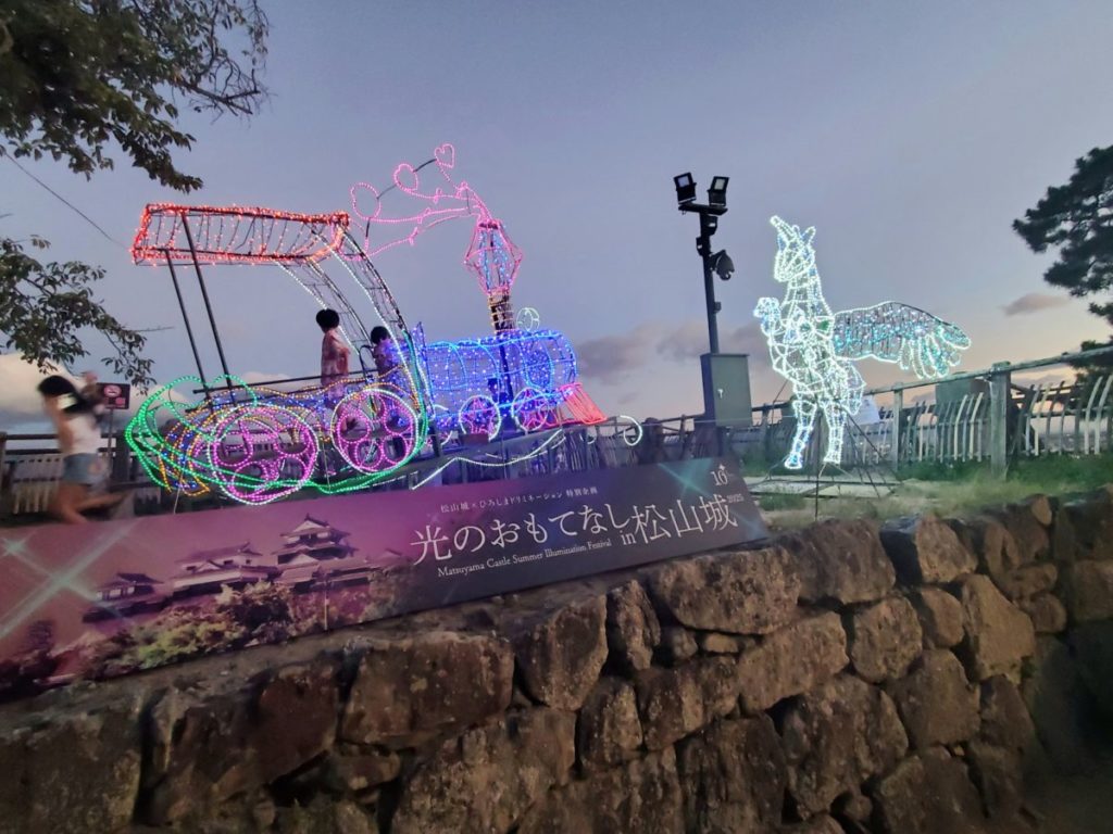 7月の終わりから8月のお盆の頃にかけて、松山城の周りがイルミネーションで飾られます。
