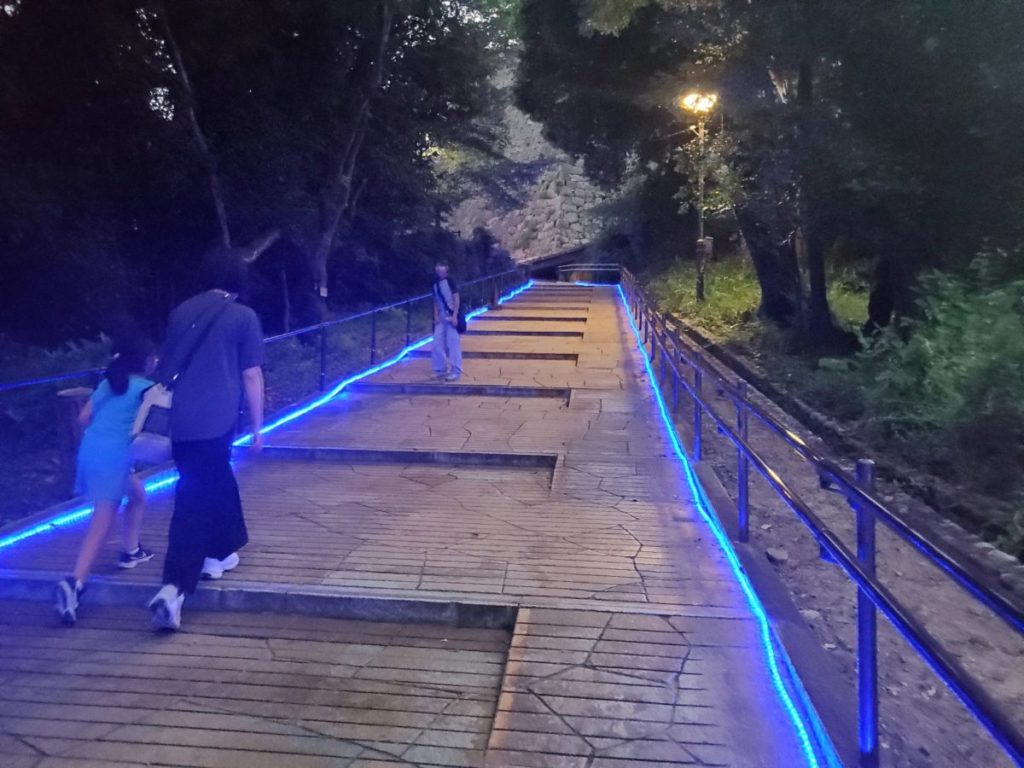 見どころ①:ライトアップされた登城道と本丸広場