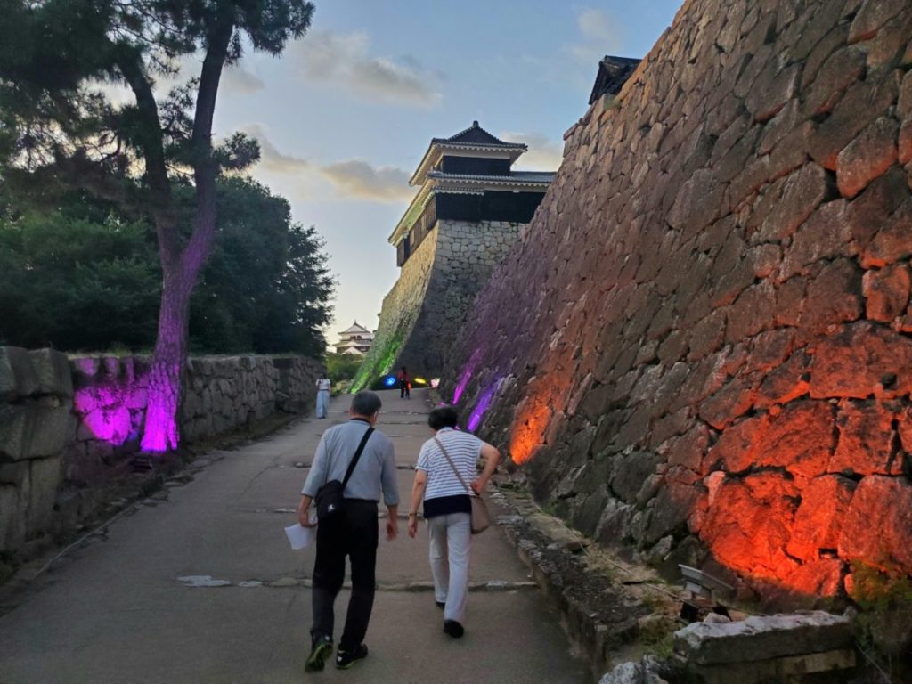 松山城で夏に開催される恒例の光のイベント「光のおもてなし」。